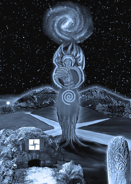 In the womb, the umbilical cord feeds us through the centre of our body, the ‘navel’, and connects us to our mother. This fundamental experience transfers symbolically to our existence on the Earth plane, hence our natural propensity to locate the centre in our inner and outer landscape. Many cultural legends refer to the navel of their continent, island or territory as being a place to access time, symbolically manifesting not as a loop but as a vertical column called the ‘axis mundi’ or ‘world pillar’, which links heaven and hell, high and low, and the different dimensions.