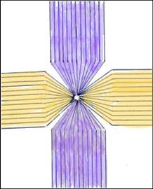 There are twelve bands within each current alternating positive and negative