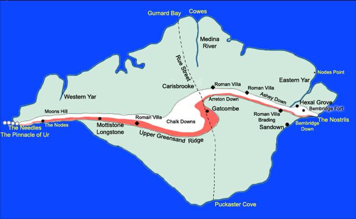 At the base of the Spine of Albion the Belinus Line begins its journey at Sandown on the magical Isle of Wight. The diamond shaped isle has a ridge of hills in the form of a serpent. Both male and female currents connect with some fascinating historical sites and cross at a secret place of power integral to the energy matrix of Britain.
